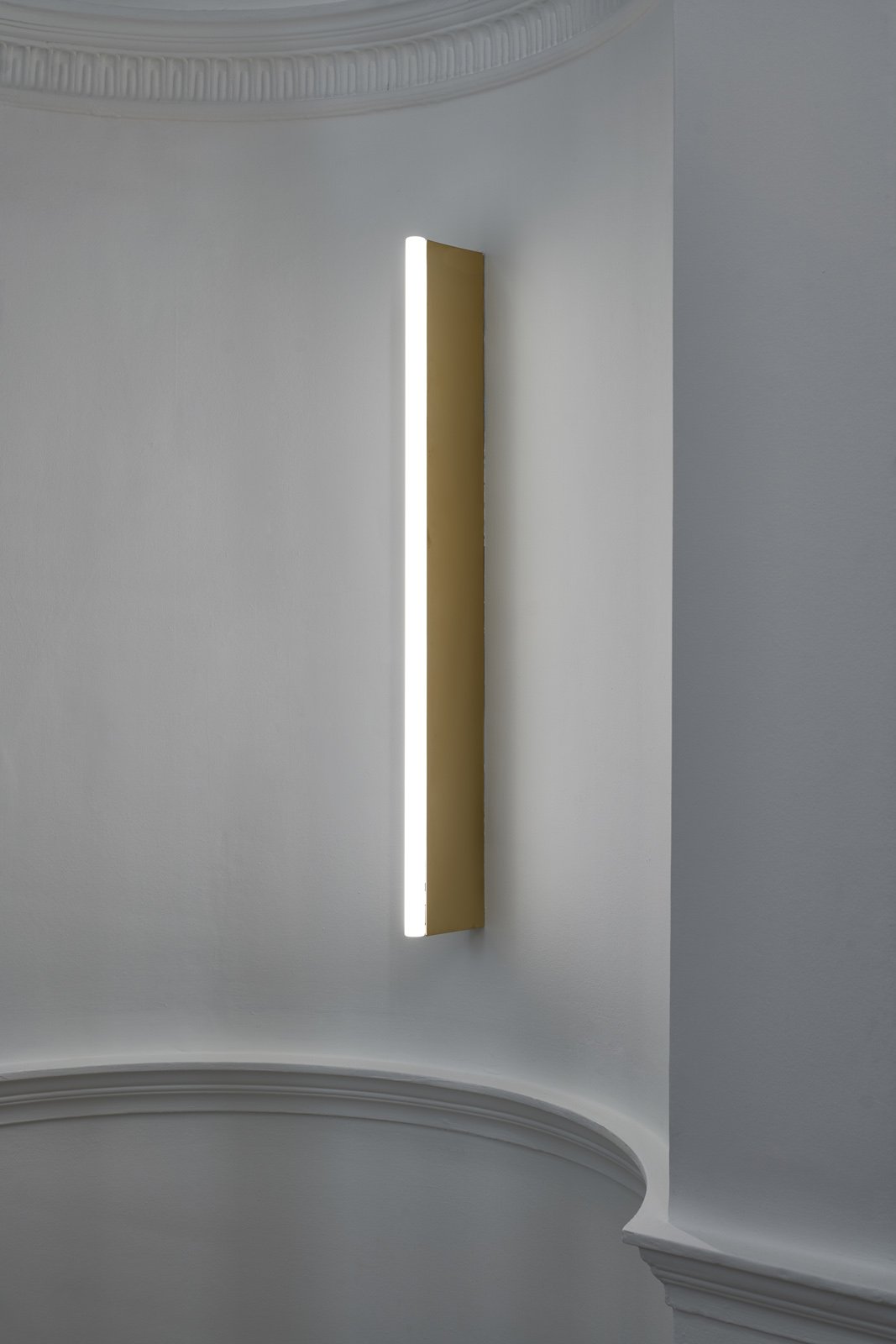 Tube Wall Lights were designed as an extension of the Tube Chandelier family. The fixture is a simple gesture of extending the bulb towards the wall through a rectangular brass section, allowing the right distance for more effective all-round illumination.